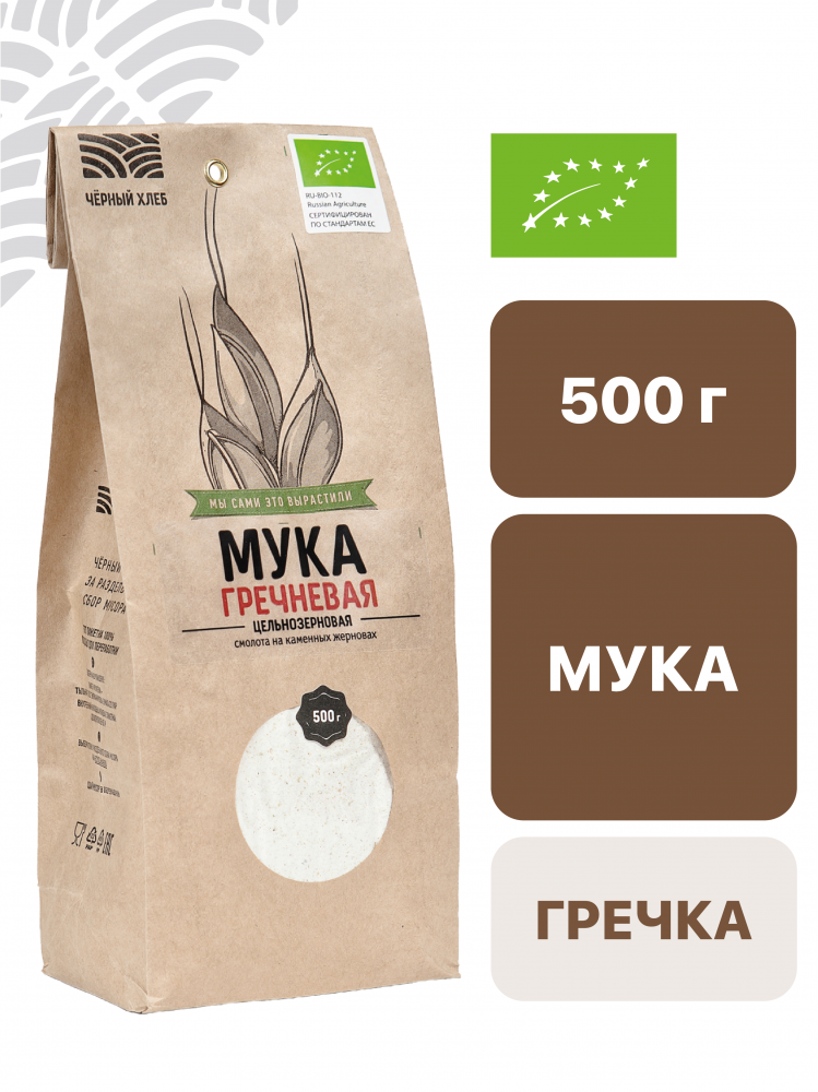 Мука гречневая органическая "Чёрный Хлеб" цельнозерновая БИО, 500 г