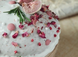 1 шт. – 1 500| Состав: | мука пшеничная органическая высший сорт, мука пшеничная органическая первый сорт, закваска пшеничная, молоко цельное, сливочное масло, яйцо куриное, вяленая вишня, лепестки чайной розы, вишнёвая настойка, сахар органический тростниковый, соль, мускатный орех, кардамон, гвоздика, белковая глазурь, декор |