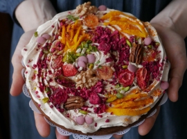 1 набор – 665Десерт на один укус. Вообще на два, но тут как кусать;) Рыхлая и мягкая медовая коврижка скрывает нежный, в меру сладкий зефирный центр, посыпана сублимированной малиной.