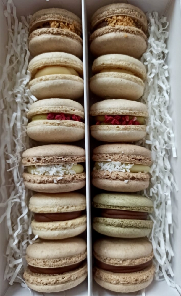 Восхитительно нежные и такие необычные на вкус макаруны: 6 кедровых, 6 конопляных и больше 10 начинок на ваш выбор.