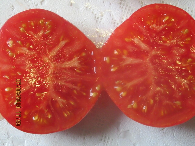На срезе розово-красные с бледно розовыми перегородками семенных камер, небольшая кислинка присутствует , для свежего употребления, переработки и консервации